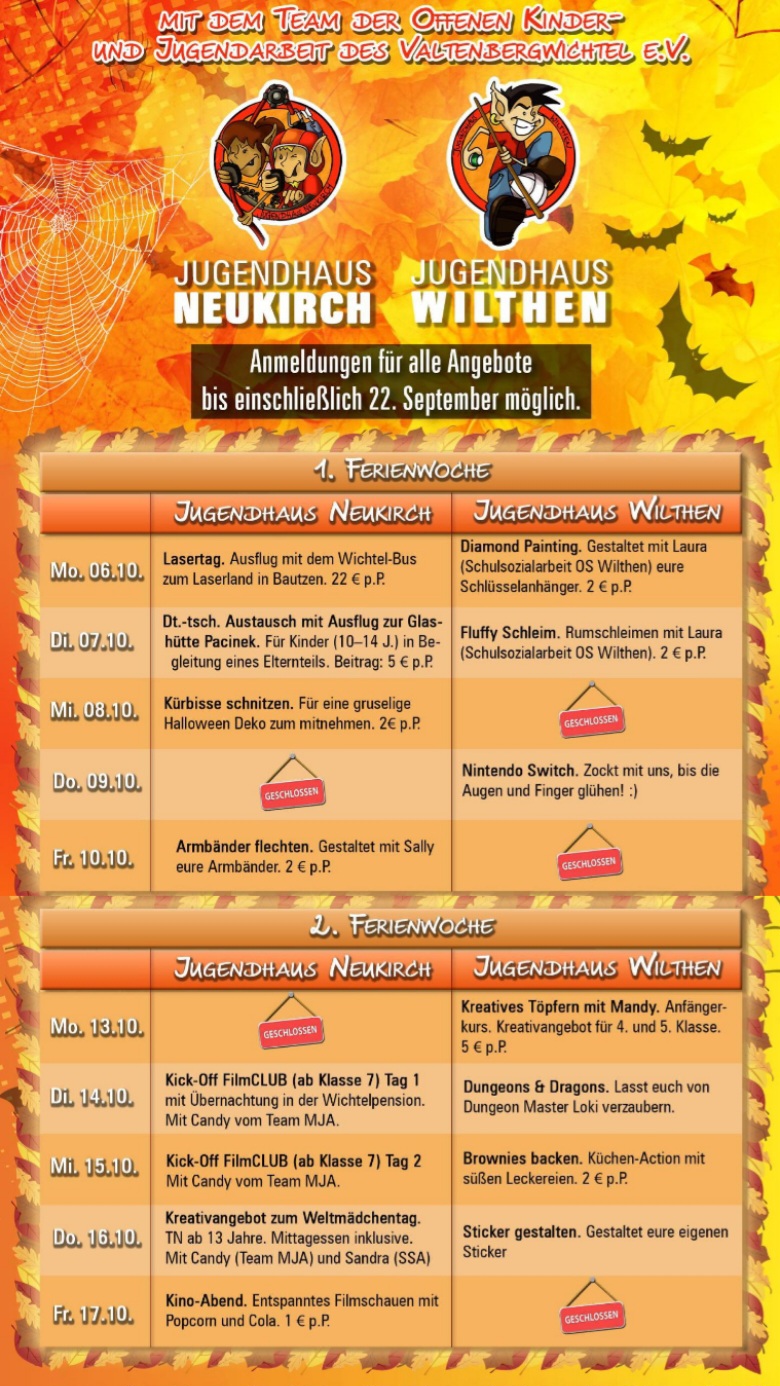 Herbstferien 2025 in den Jugendhäusern Wilthen und Neukirch